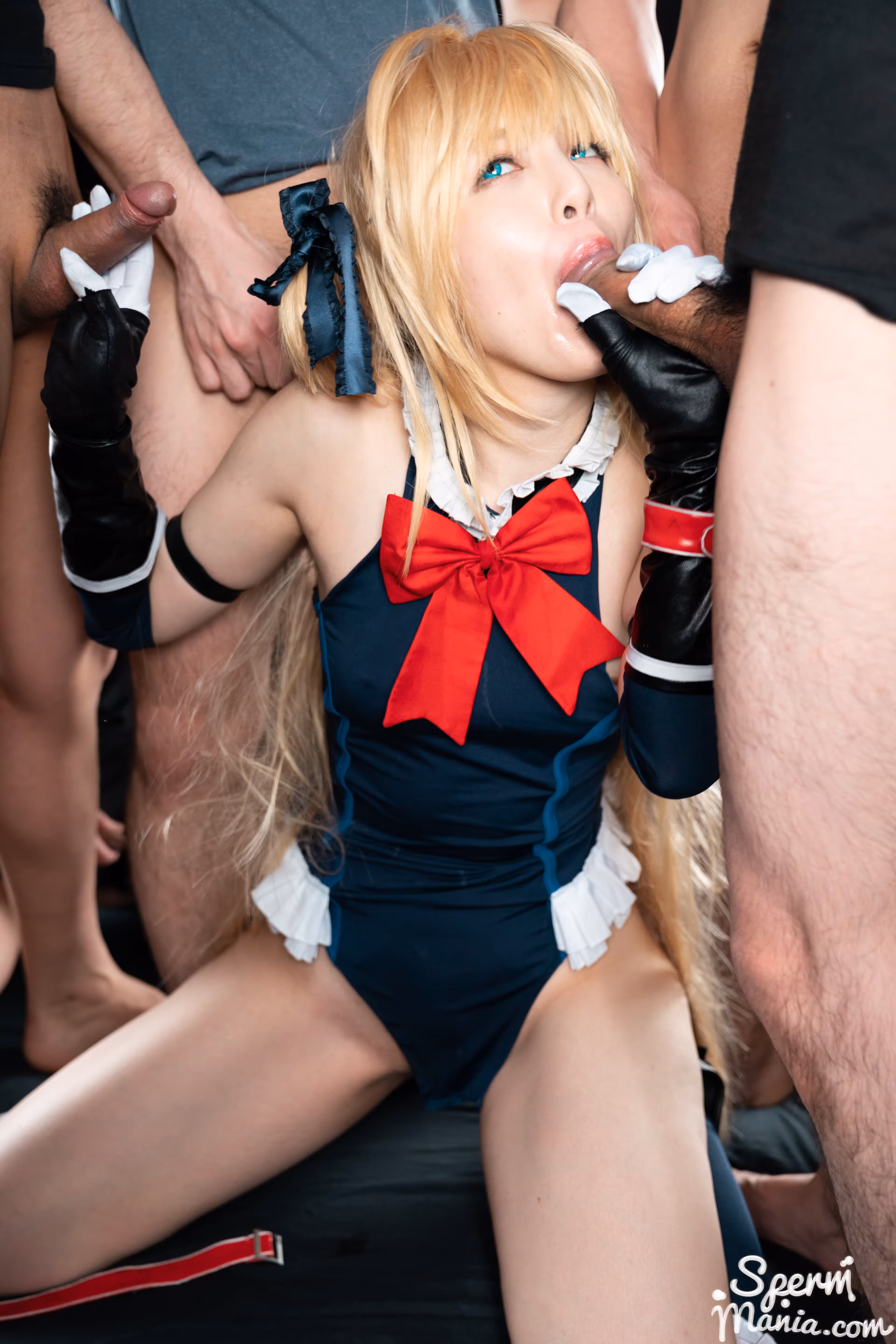 Mari 被 8 个男人轮奸,直到他们都射进她的阴户里。