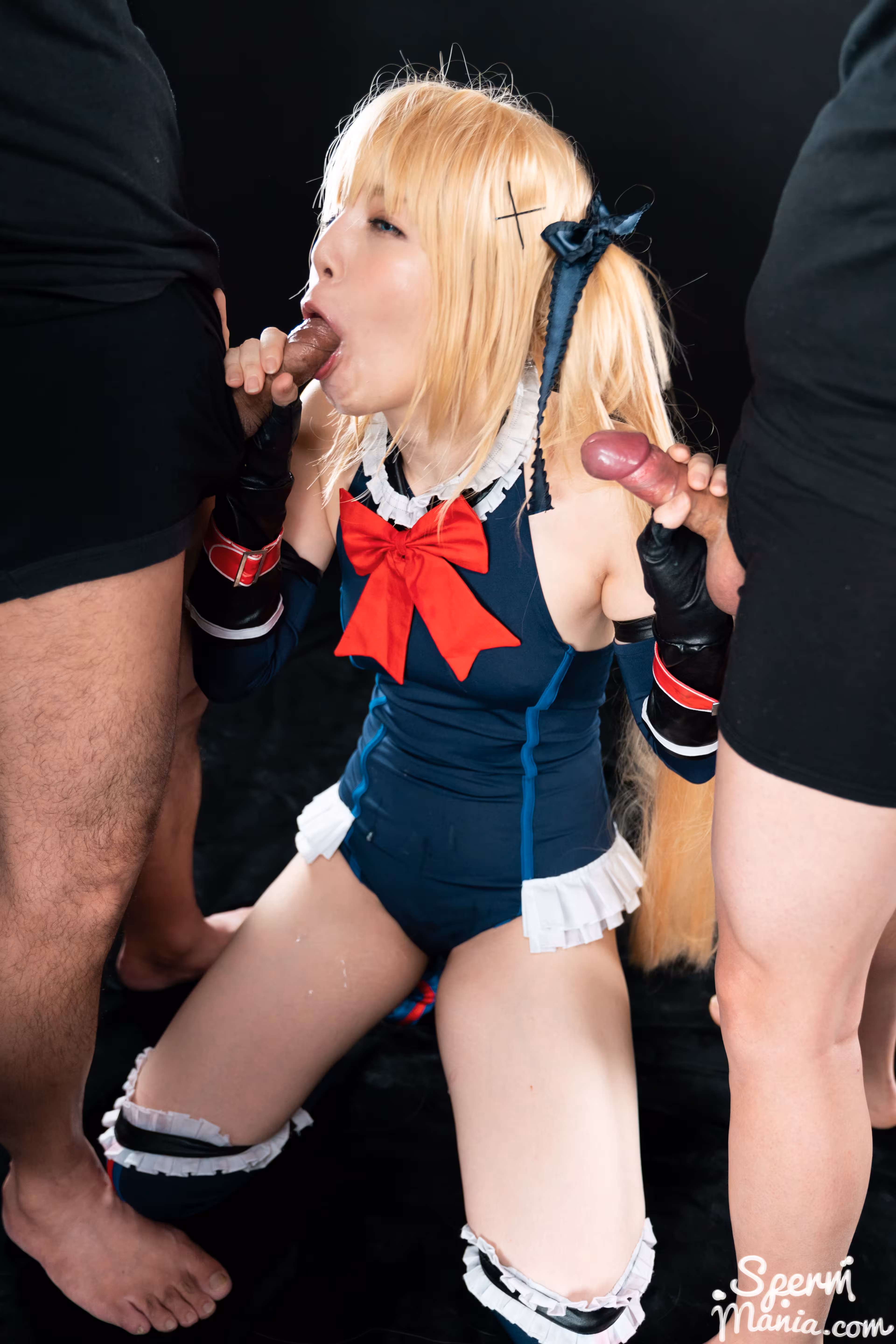 Mari 进入了她的角色扮演角色,用她角质的嘴巴释放了两根坚硬的鸡巴,让它们射得到处都是。
