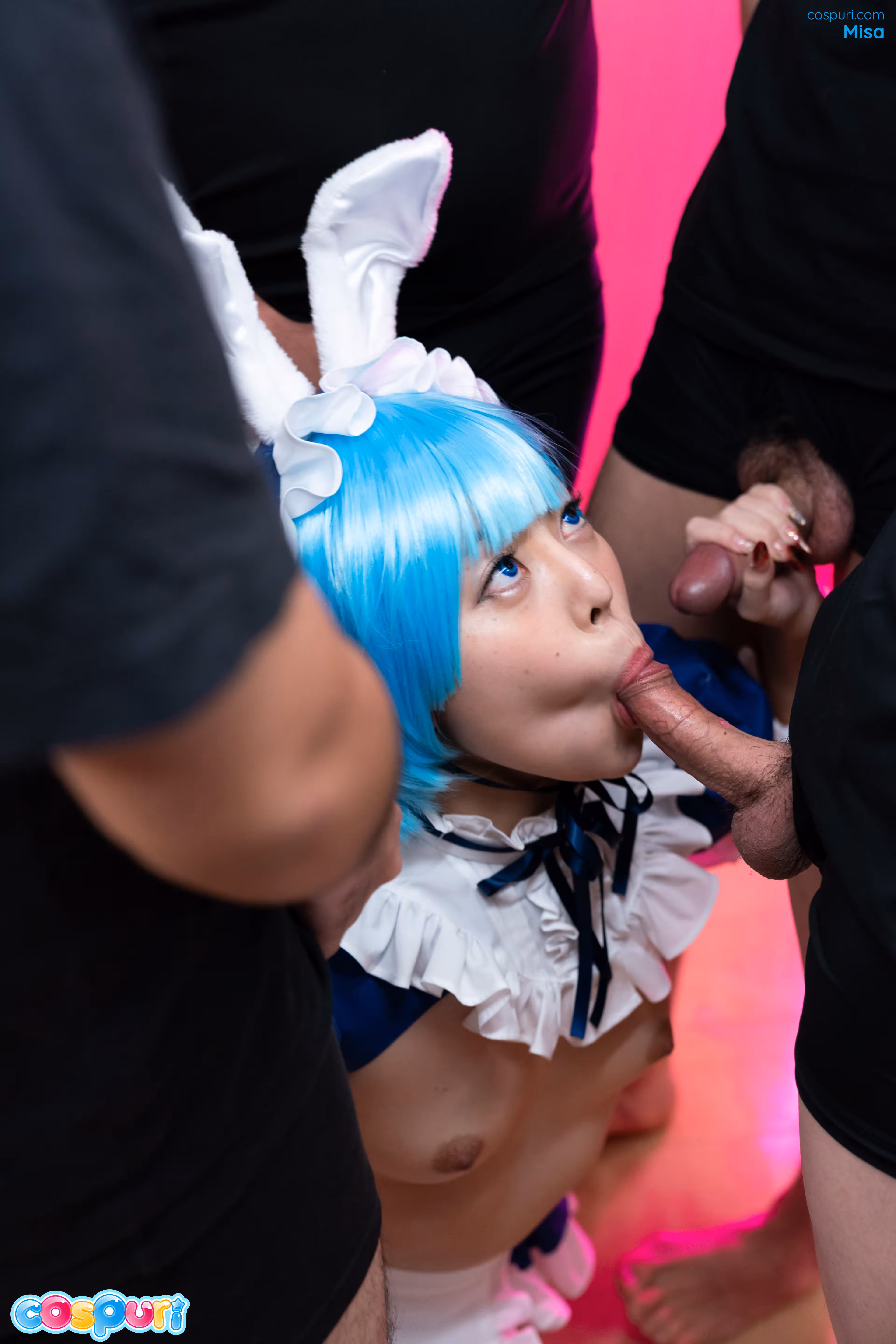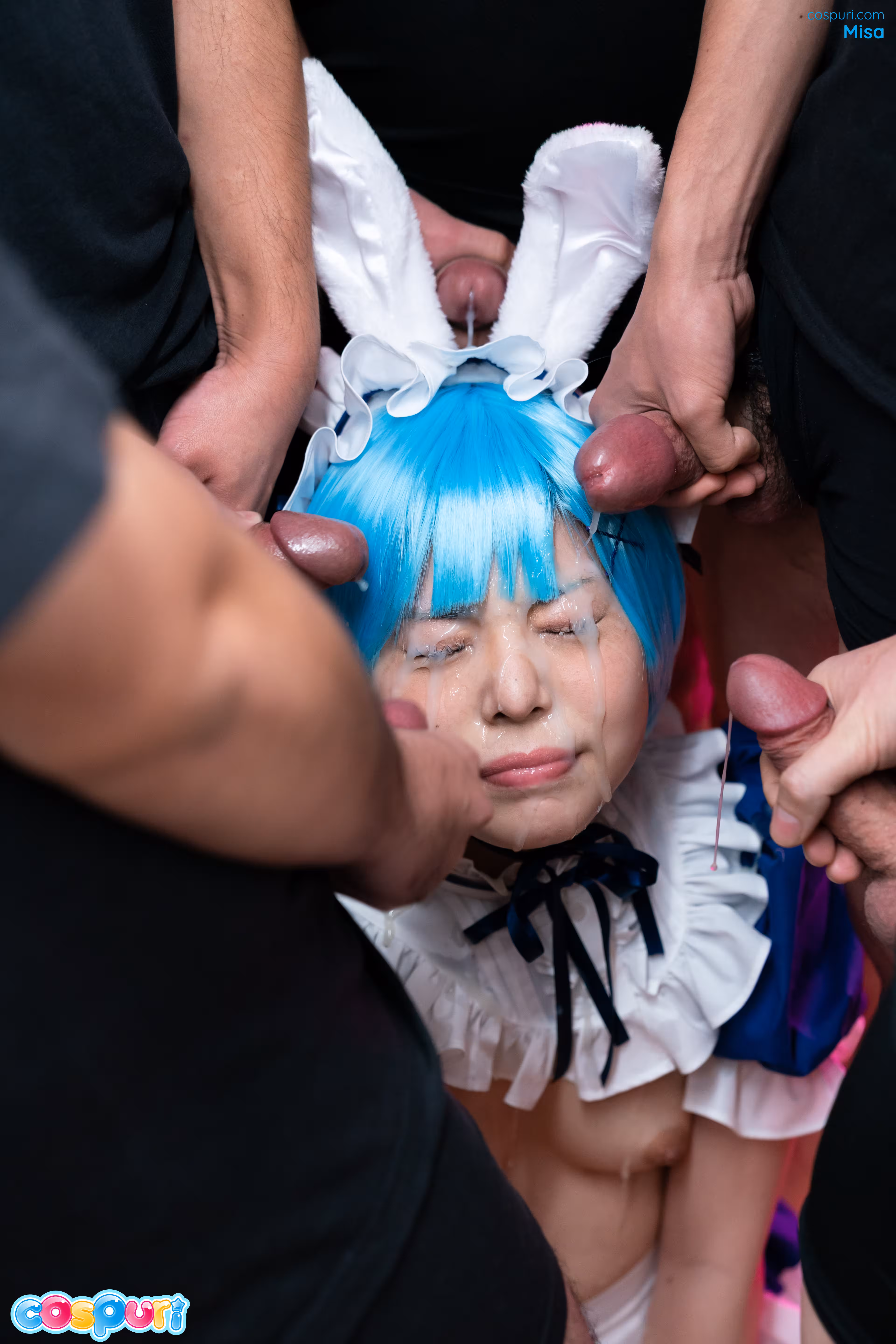 可爱的cosplay女仆米莎很高兴你带了所有的朋友过来玩。她知道你想做什么,当每个人都抽出坚硬的鸡巴时,她就会感到兴奋。她跪下,张开嘴,准备被鸡巴窒息。当她试图尽快吸掉所有的东西时,它们就这样做了。但这不会持续太久,因为每个人都会同时将浓稠的精液喷射到她的脸上!