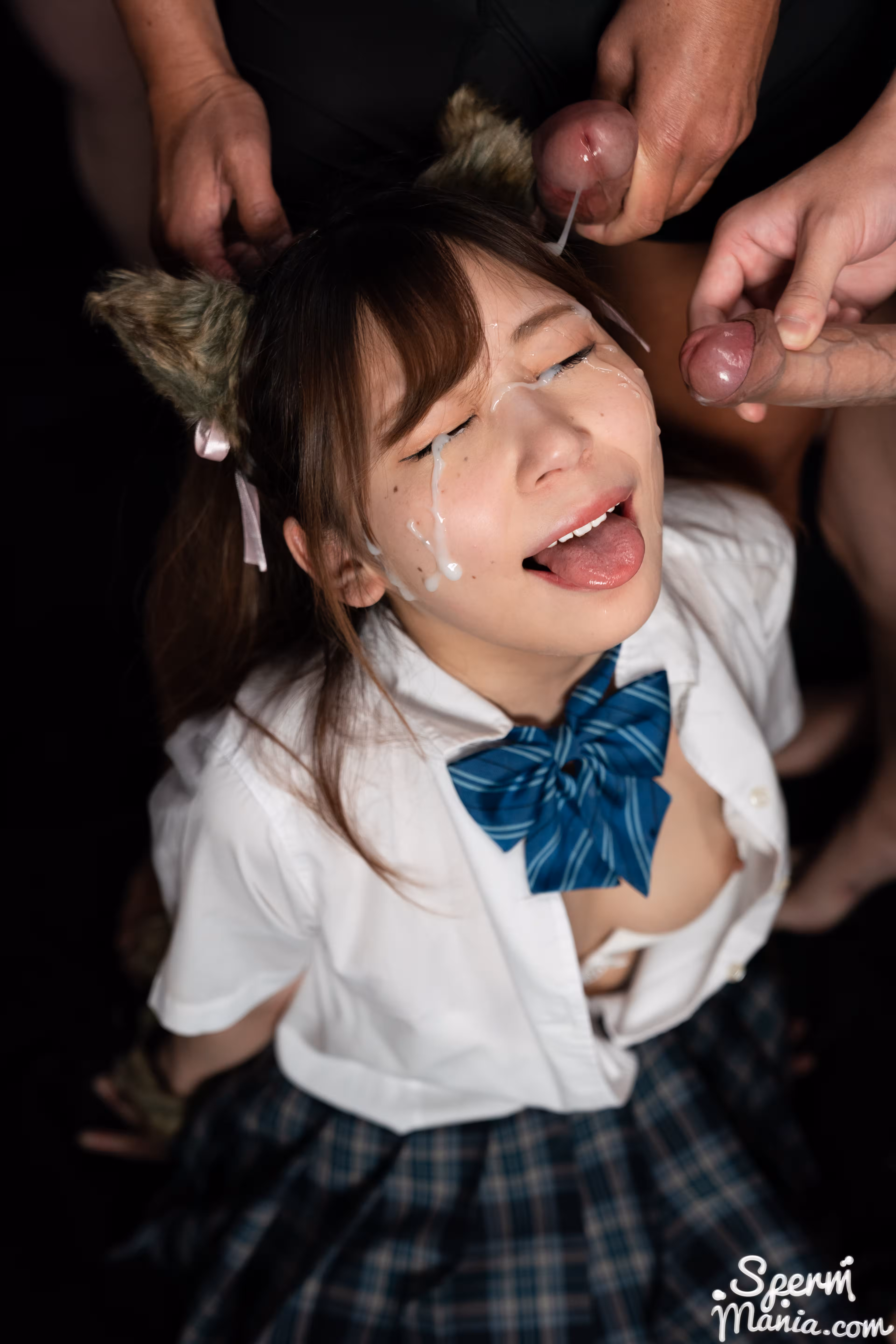猫耳女学生 Nagi Tsukino 被挤满了鸡巴,她立即将鸡巴塞进嘴里,直到它们充满精液。然后他们立刻将一股精液倾泻到她的脸上,完全浸湿了她的脸,让她饥渴难耐,忍不住要疯狂地自慰。