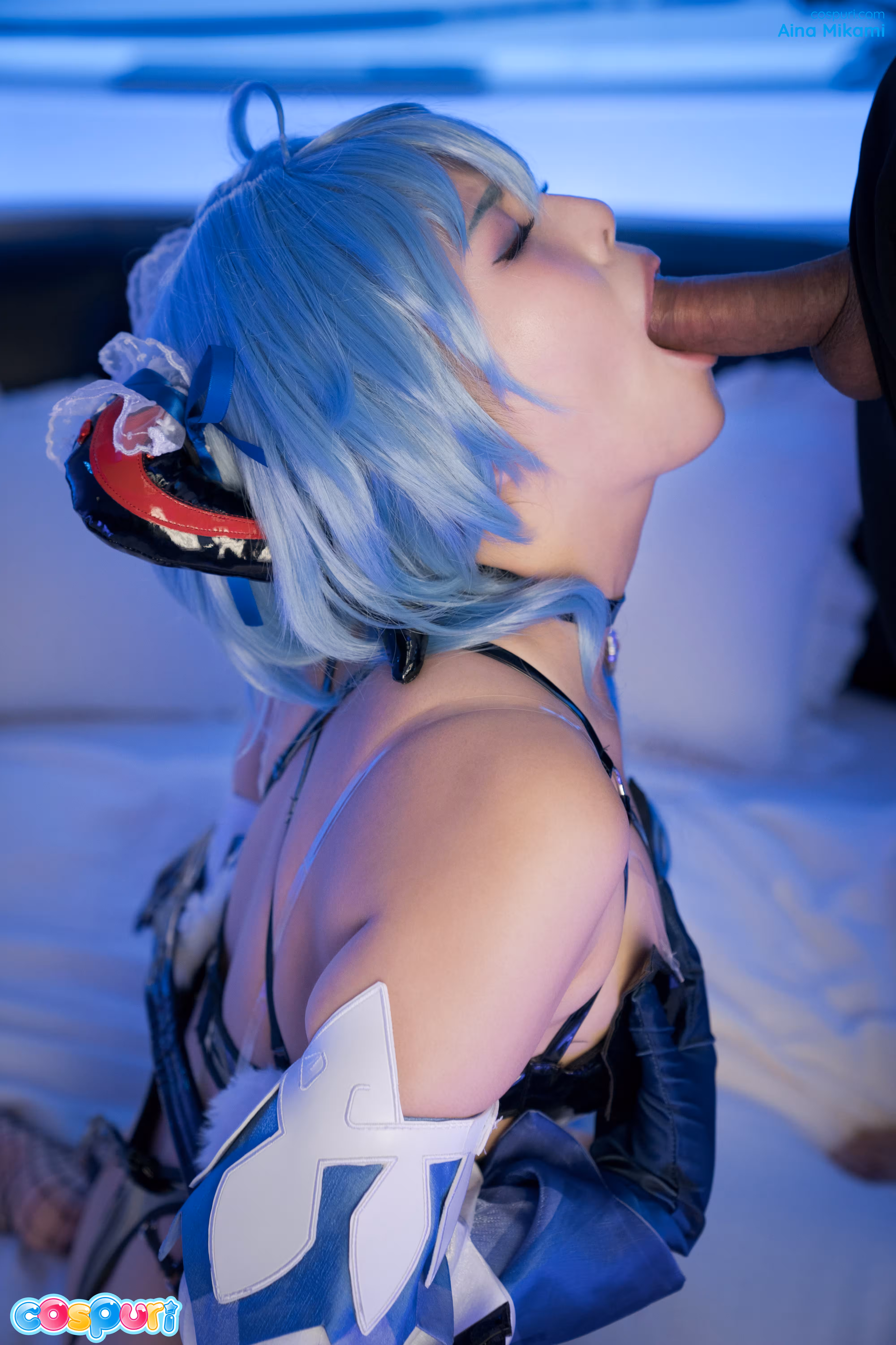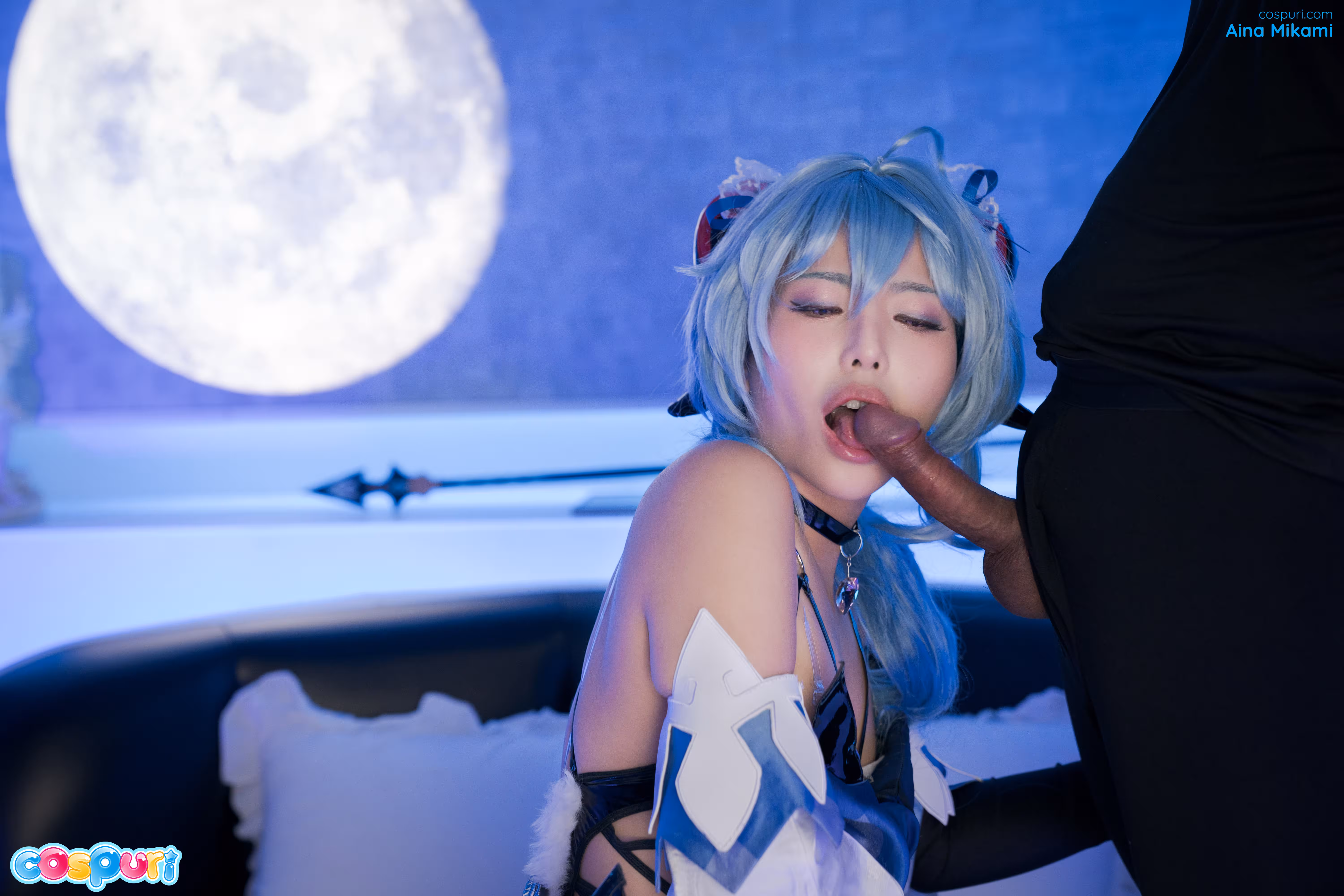 三上爱奈在这款游戏角色的魅魔版本中跪下并张开嘴。她用嘴利用她超自然的性欲,将巨大的粘液射到她的嘴上!